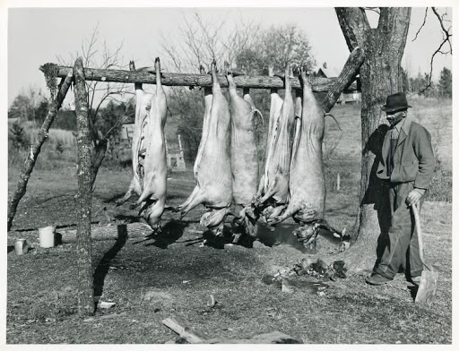 And then there was hog-killing–bloody, brutal, but absolutely essential: A 500-lb hog could feed a family from winter to spring, with the side benefit of treats like chitterlings and cracklings, which were supposedly as addictive as potato chips (and the leftover skin used as a long-lasting chewing gum!).